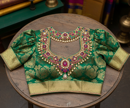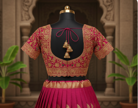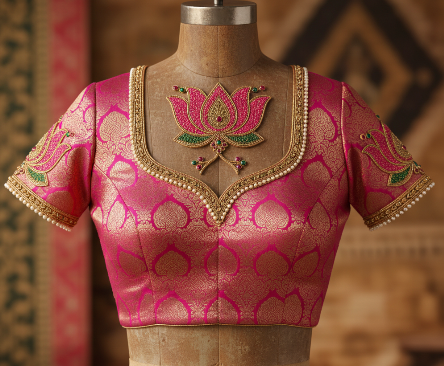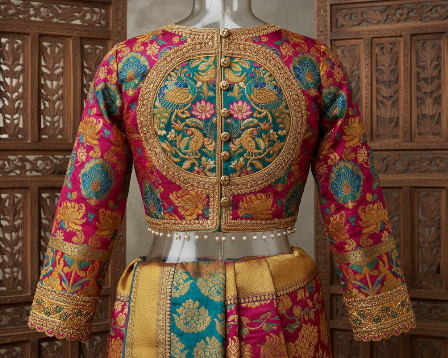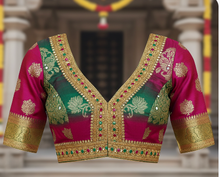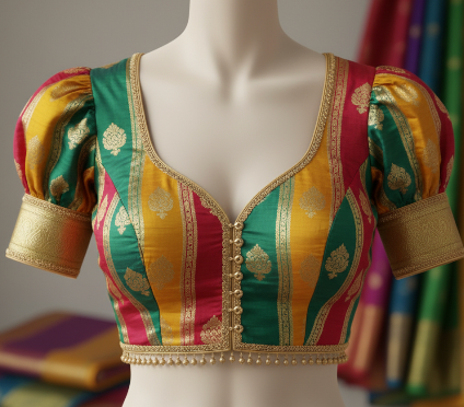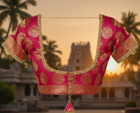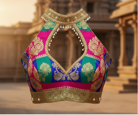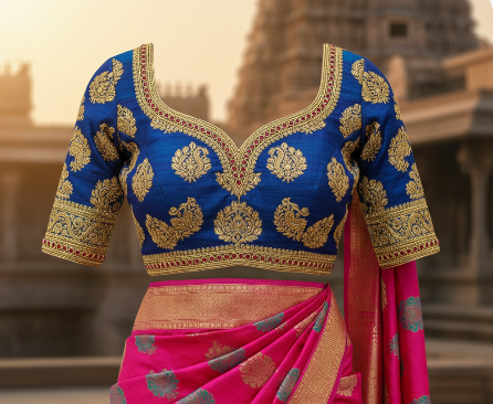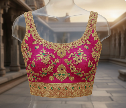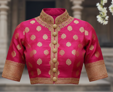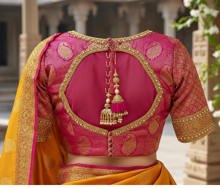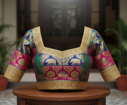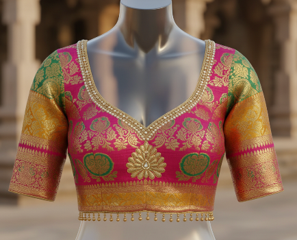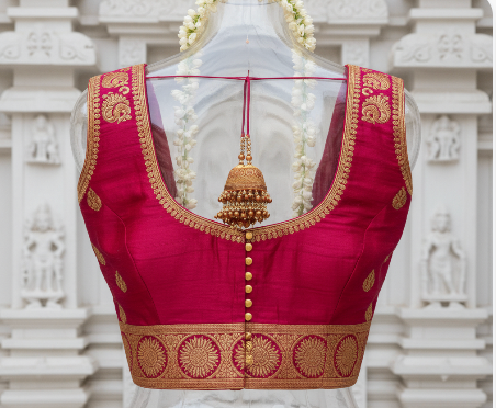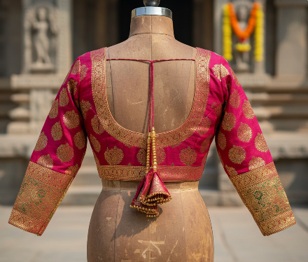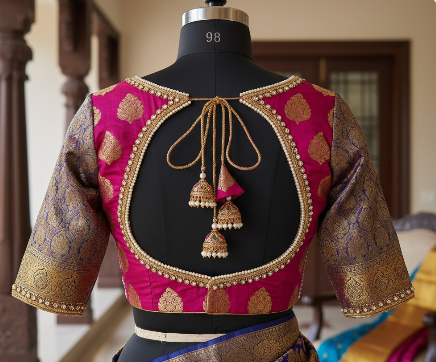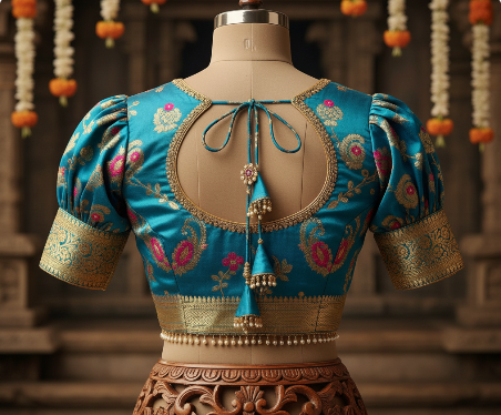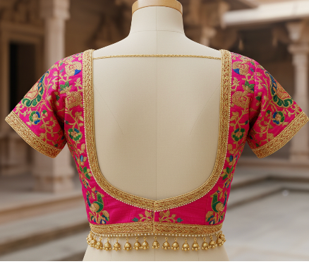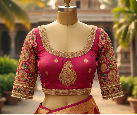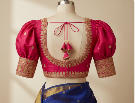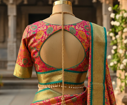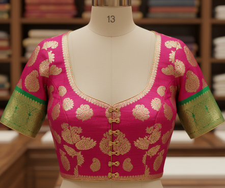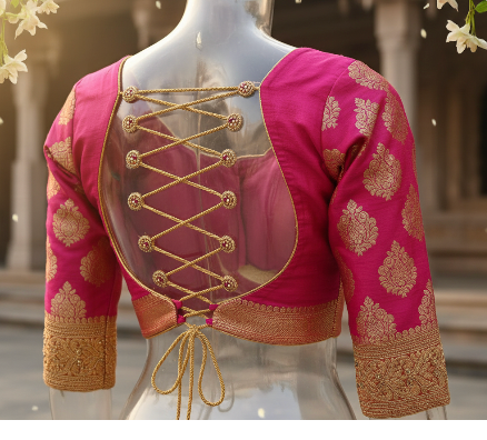 Explore a wide range of saree blouse designs – from classic elbow-length blouses to trendy sleeveless, boat neck, and backless styles. Our custom blouse stitching service lets you choose the perfect neckline, sleeve pattern, and embellishments to match your saree. Designed by expert tailors, each blouse ensures a flawless fit, elegant finish, and ultimate comfort for weddings, parties, and everyday wear. Any custom style request will be tailored exclusively for you after a detailed consultation with our designer.