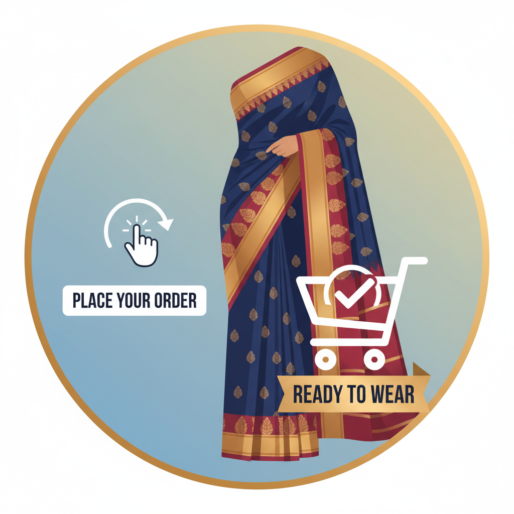 We know your time is precious. Our Ready-to-Wear service is more than just pre-pleating; it's a personal styling solution. You choose the saree, and we take care of the rest, ensuring a flawless drape that's ready to wear in minutes.